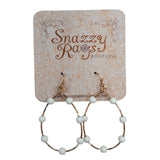 Light weight earring with cream color beads on a gold teardrop shape earring