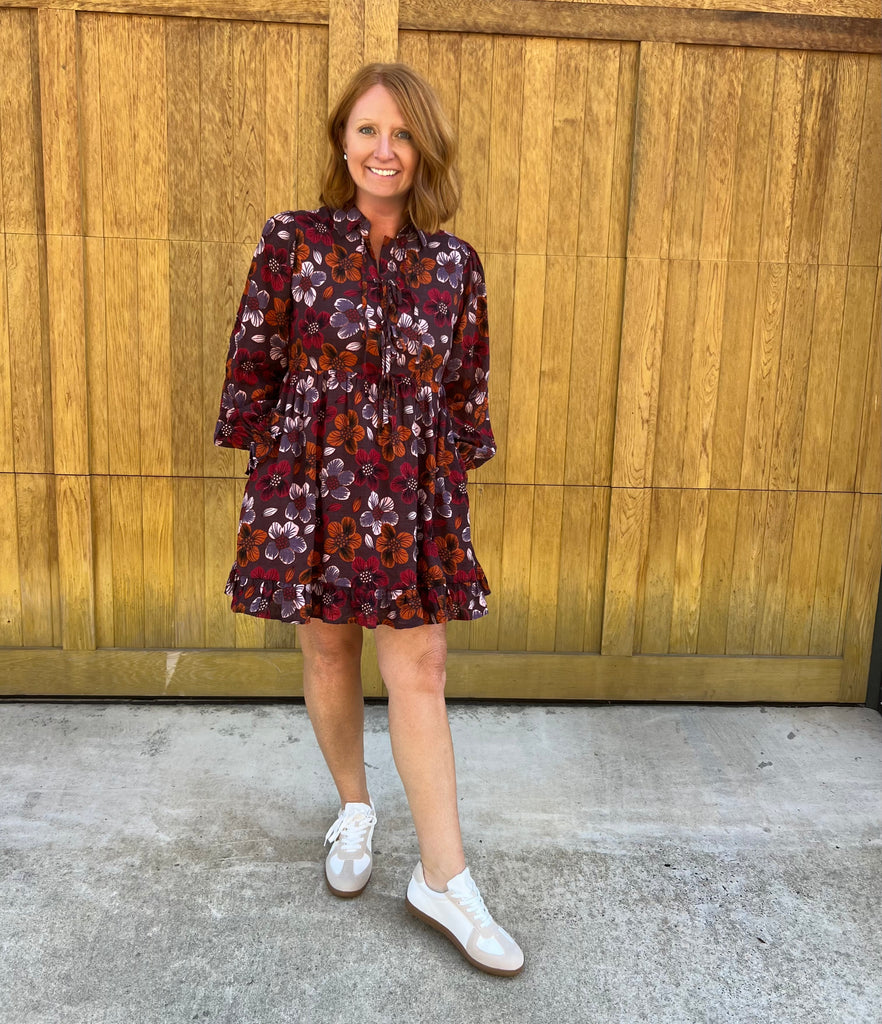 Fall Floral Tie Front Dress