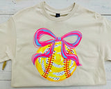 Softball With Bow Graphic Tee