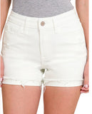 White Cuffed Raw Hem Denim Shorts