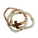 Chunky beaded cross bracelet set! With Gold Cross and champagne beads
