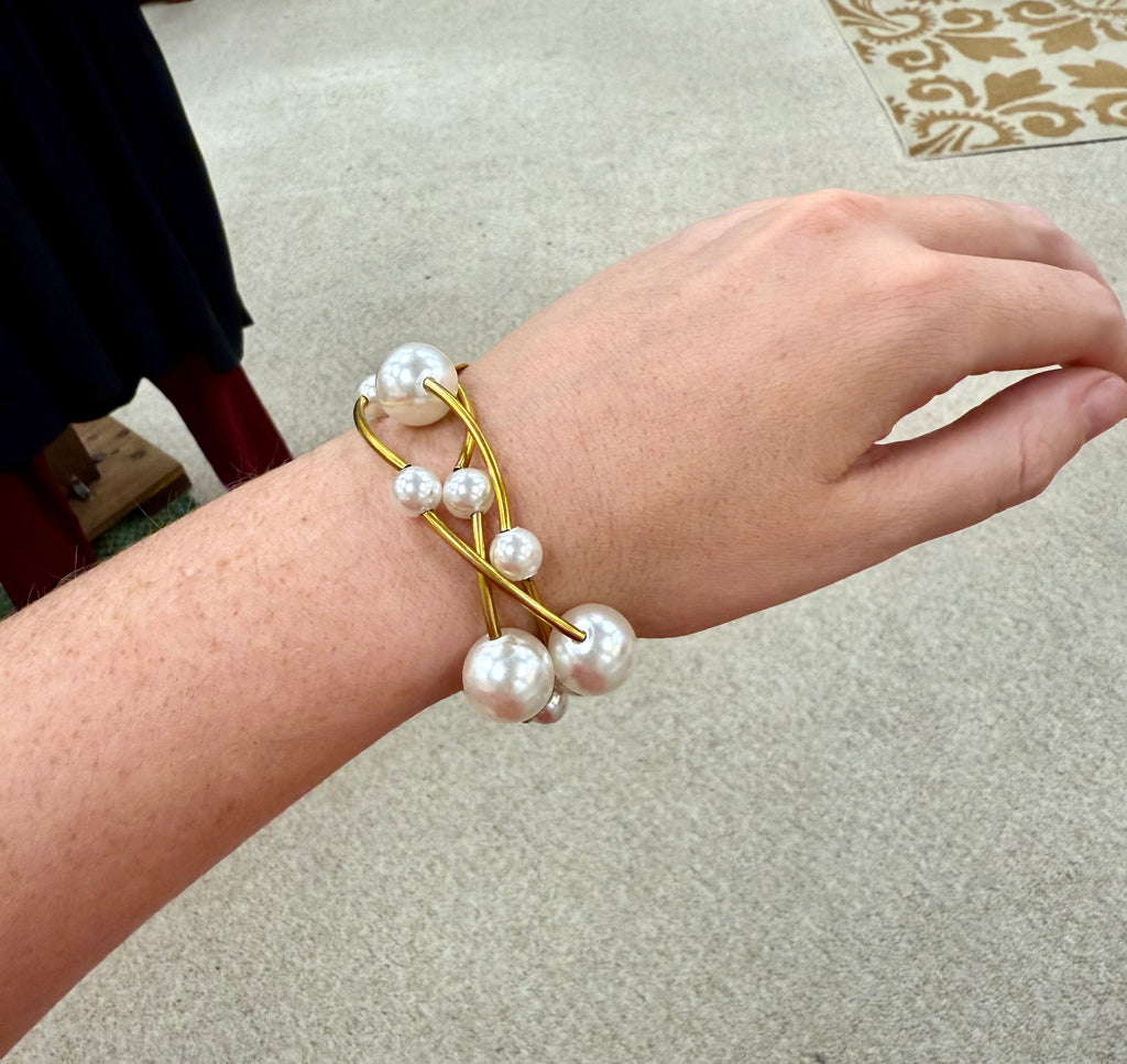 • Gold and Pearl Wrap Bracelet