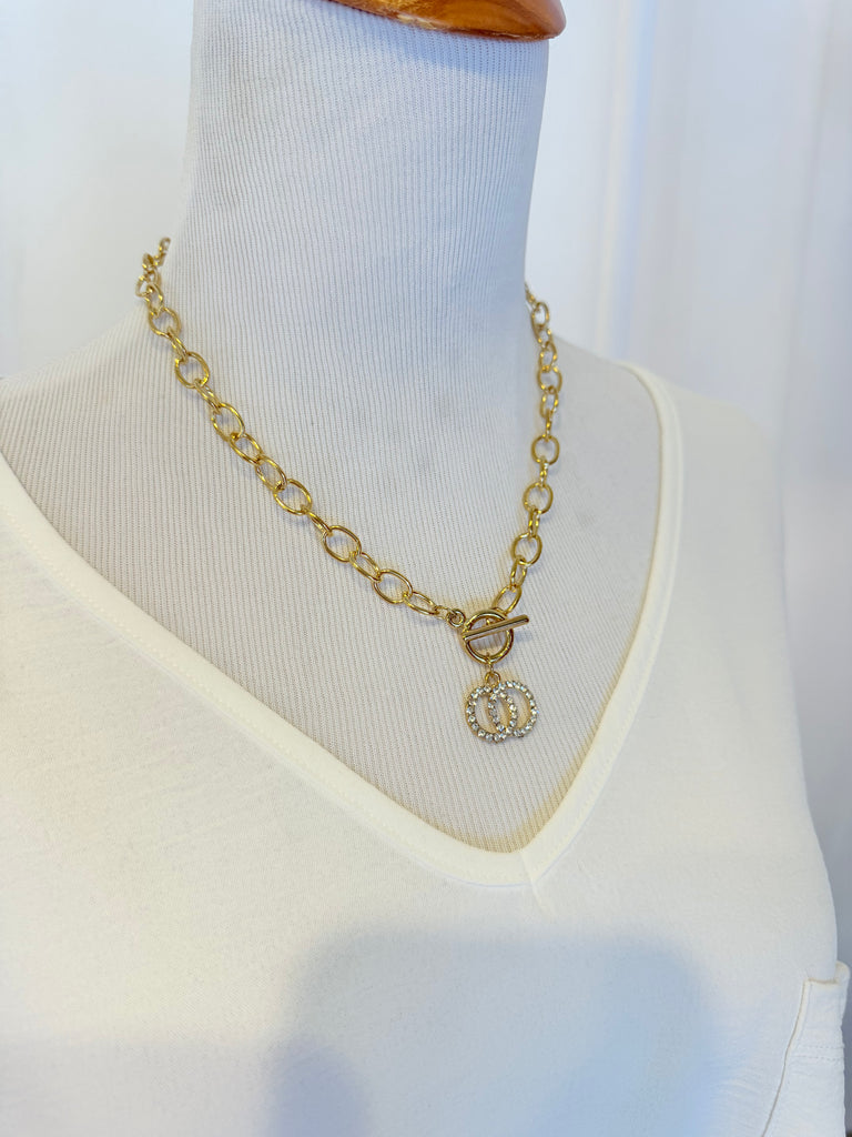 • Gold Linked Necklace with Rhinestone Inspired Pendant
