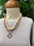 • Gold Quatrefoil Beaded Layered Necklace