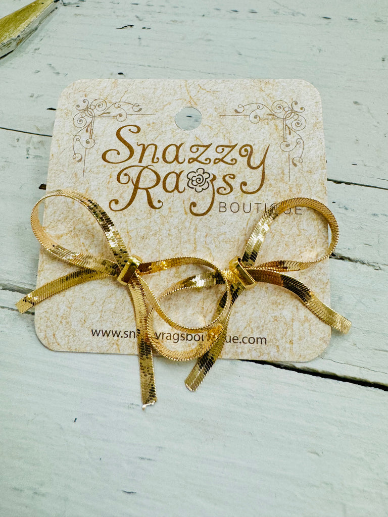 Add a touch of sparkle and sweetness to any outfit with our Bow Chic Earrings! These delicate metallic bows are the perfect mix of feminine charm and festive flare, available in both gold and silver finishes.