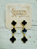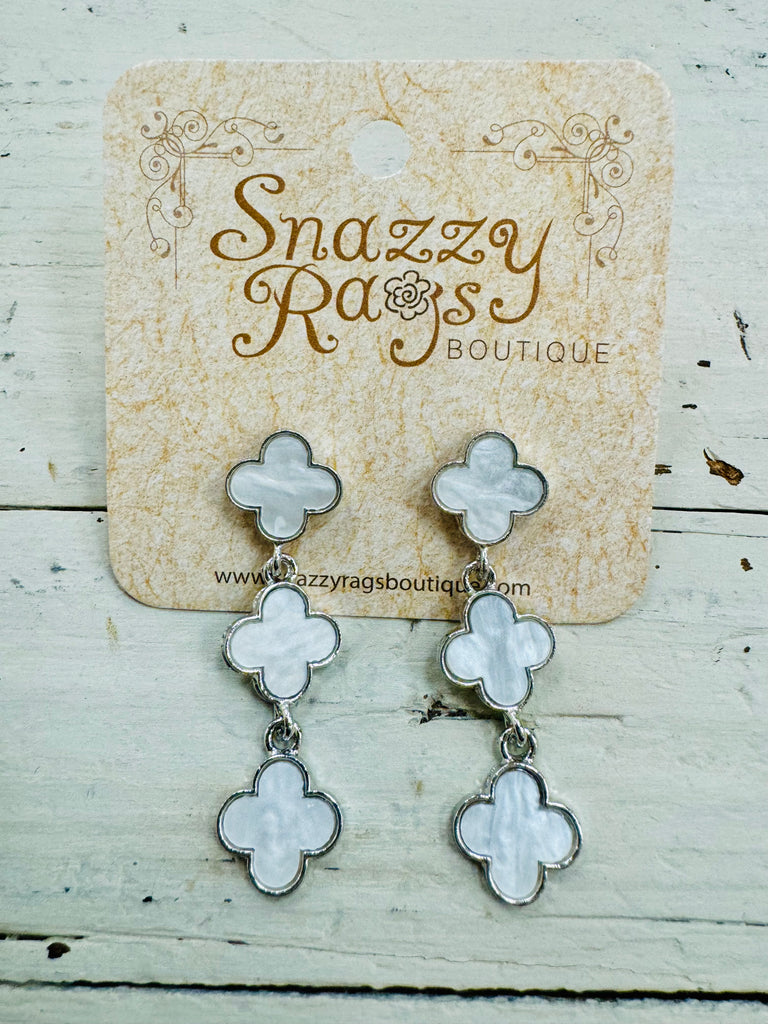 Add a touch of chic elegance to any outfit with our Triple Quatrefoil Drop Earrings. Featuring a classic quatrefoil design, these light weight earrings bring the perfect blend of trendy and timeless style. Each pair showcase 3 linked quatrefoils with a glossy enamel finish and your choice of silver or gold trim. Whether you are dressing up for a special occasion or adding flair to your everyday look, these earrings are sure to make a statement.