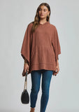 Blending the comfort of a hoodie with the relaxed elegance of a poncho, this ribbed knit top delivers the best of both worlds. The poncho style bodice drapes effortlessly for a laid back, roomy fit. The perfect fall layer has arrived. This cozy hooded poncho is crafted from a soft ribbed knit and features a convenient kangaroo pocket for warmth and essentials. Effortless style is just a pullover away.